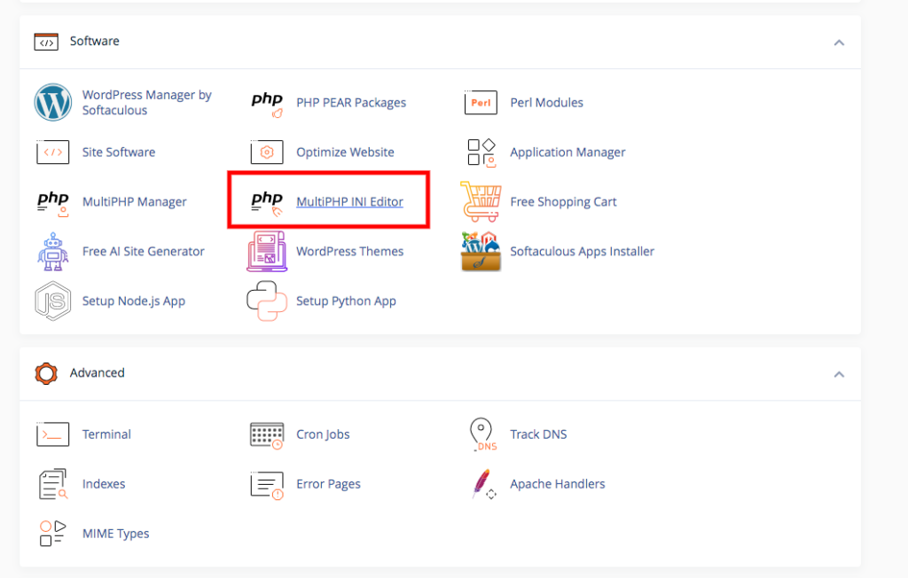 – Select the “MultiPHP INI Editor”